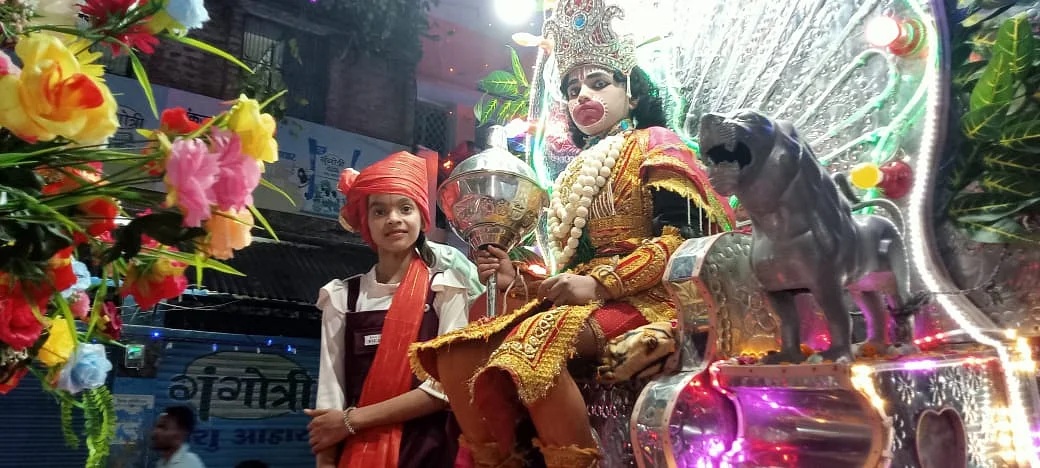 As every year, this year too the Prakat Utsav of Shri 1008 Ram Bhakt Shri Hanuman Ji was celebrated in Baldevgarh town with great devotion, enthusiasm, and grandeur. On this auspicious occasion, a massive, magnificent, and divine procession and moving tableau were taken out across the town.