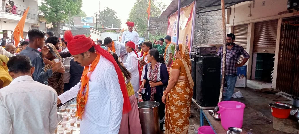 During the procession, community members organized bhandaras and distributed prasad, kheer, fruits, and refreshments at 10–12 locations. The women of Guru Kripa Traders (Badmadai family) distributed namkeen, tea, and biscuits, which became a special center of attraction.