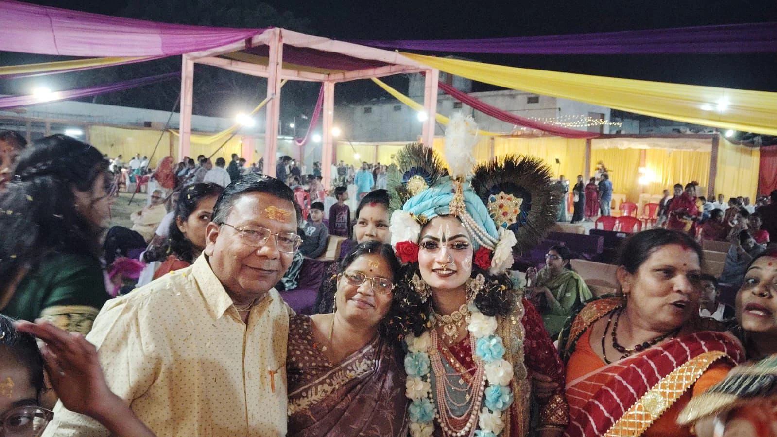 This was followed by devotional singing by the bhajan mandali and performances by artists portraying Radha-Krishna. The program included bhajans, dance performances, peacock dance, and Phoolon ki Holi, creating a joyful and spiritual atmosphere. Women and other members of the community enthusiastically participated in dance and celebrations.